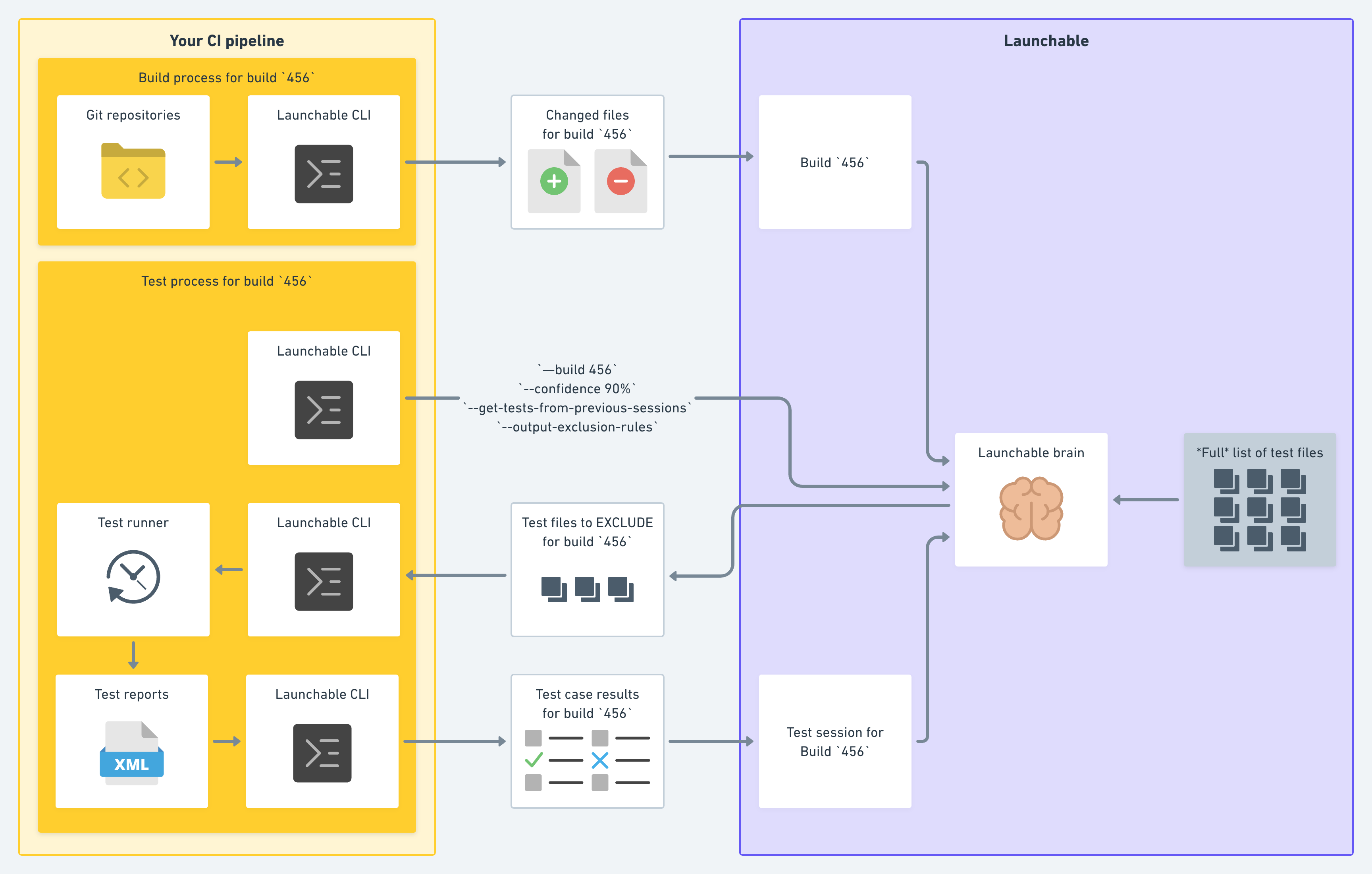 We’ve created a complementary approach called Zero Input Subsetting . With this approach, the CLI does not have to gather and submit the full list of tests. Instead, the server generates the full list of tests from the last two weeks of recorded sessions. To ensure new tests are run, the CLI outputs exclusion rules instead of inclusion rules.