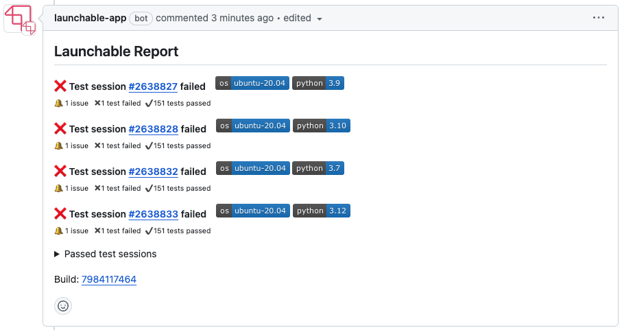 Developers can get convenient and timely access to the details of the tests run in their GitHub pull requests, so that they can immediately start working on failures, even before the whole CI process finishes. These are delivered as comments to pull requests.